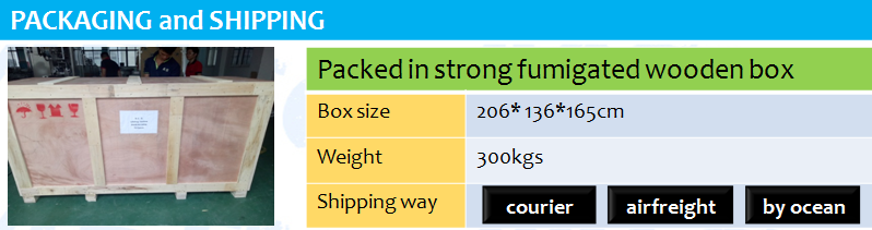 | Pas shërbimit | Shitësi ofron instrument dhe video për mënyrën e instalimit, rregullimit dhe përdorimit të makinës sapo makina të jetë gati. Shitësi ofron shërbim në kohë kur përdoruesi ka problem përdorimi. Shitësi mund të dërgojë një inxhinier në fabrikën e blerësit për instalim dhe komisionim dhe trajnim, blerësi duhet të jetë përgjegjës për dhomën dhe bordin dhe biletat ajrore të kthyera dhe tarifën e vizës |
